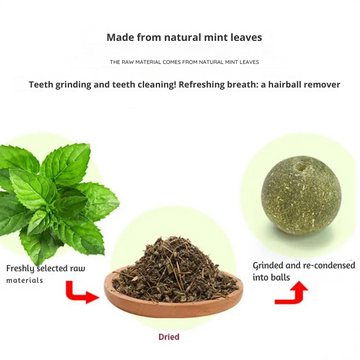 Made from natural mint leaves, this Interactive Catnip Wall Ball promotes teeth grinding and cleaning while refreshing your cat's breath. Its natural ingredients help with hairball removal and provide engaging play.